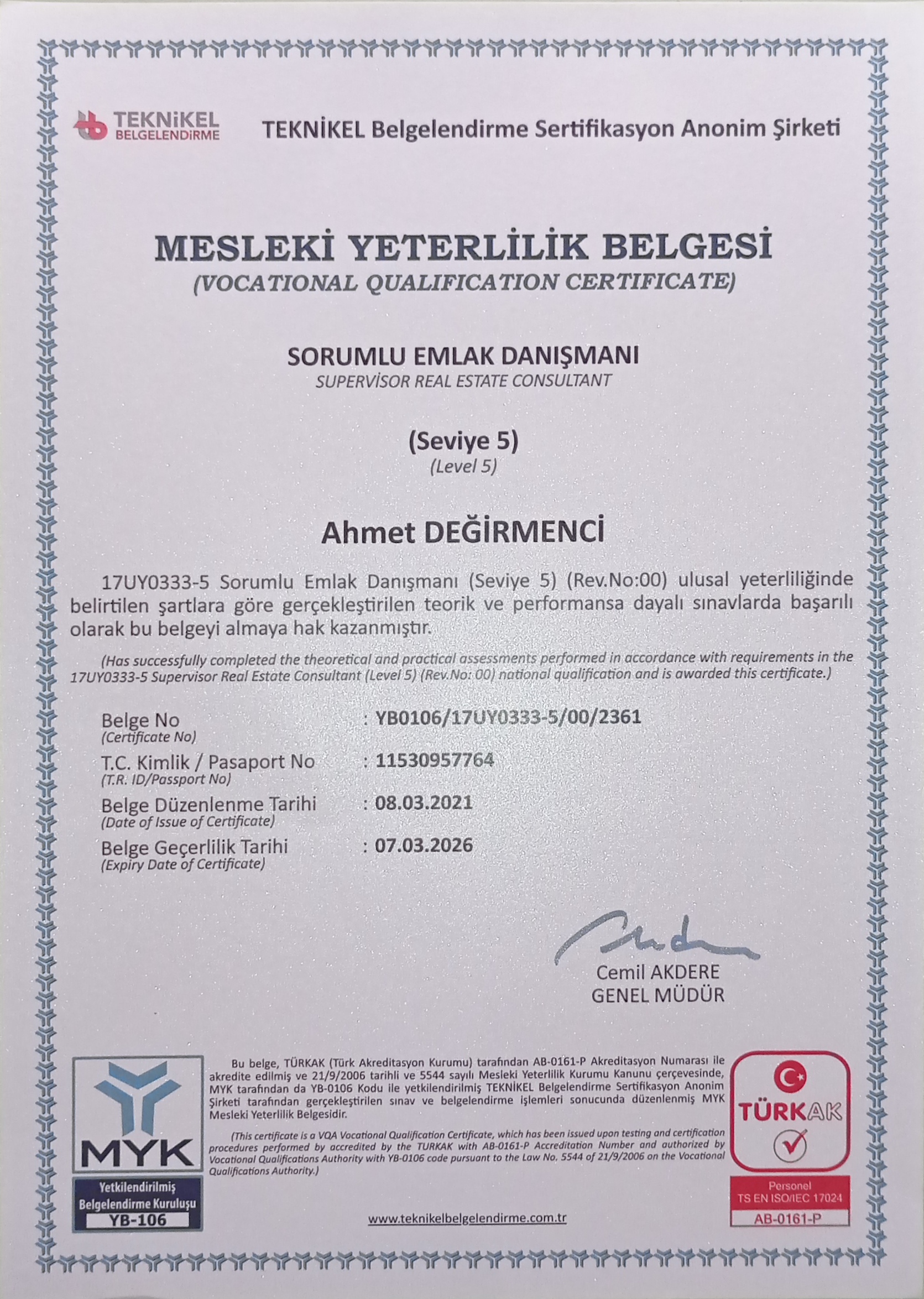 As a professional who adopts ethical standards and develops myself through continuous training, it is my main goal to ensure that my clients adapt quickly to the market and make the right investments. I consolidate my place in the industry with my principles of Honesty, Transparency and Professionalism.