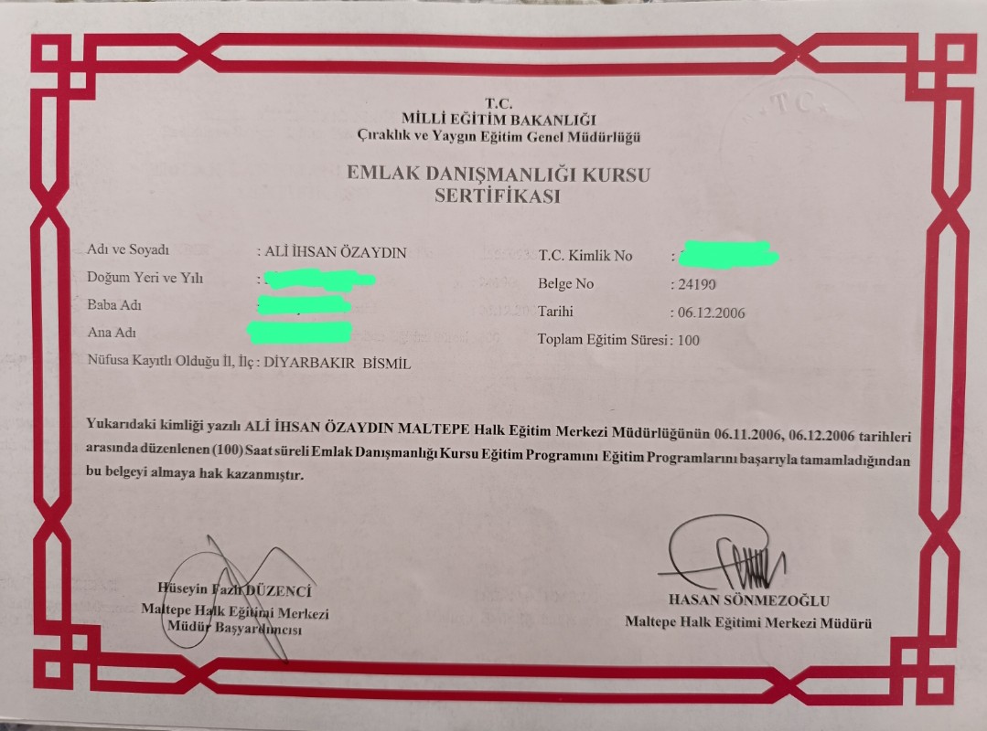 Merhabalar. 2006 yılında emlak sektörüne İstanbul'da girdim. Öncelikle REMAX temel satış eğitimlerimi tamamladım. İstanbul/Maltepe/Küçükyalı Remax/Grup şubesinde çalışmaya başladım. Sektörde tecrübe edindikten sonra Milli Eğitim Bakanlığı Maltepe Halk Eğitim'den 100 saatlik Emlak Danışmanlığı Kursu Sertifikamı aldım. Emlak sektöründe çalışırken aynı zamanda Milli Eğitim Bakanlığı'nda 25 yıl öğretmen ve yönetici olarak çalıştım. 2024 yılında emekli oldum. Portföyünüzü güvenilir bir şekilde teslim edebilirsiniz...Bol kazançlar...Saygılarımla...