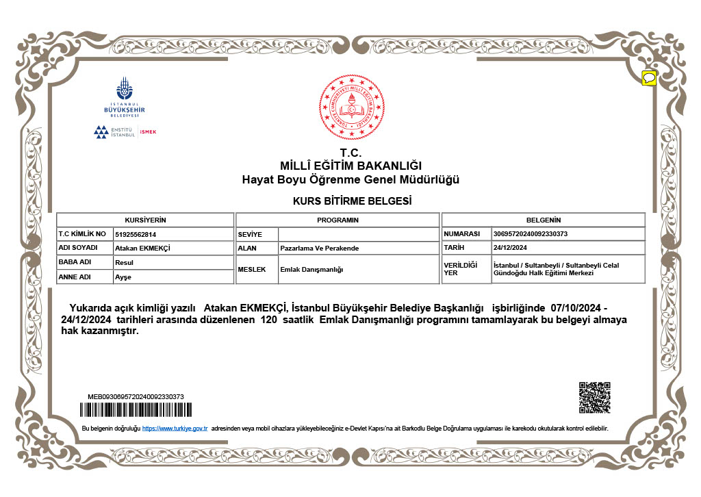 1980 yılında Amasya’da doğan Atakan Ekmekçi, 2001 yılında 19 Mayıs Üniversitesi Matematik Öğretmenliği Bölümü’nden mezun olmuştur. 23 yıl boyunca öğretmenlik yaparak sayısız öğrenciye rehberlik etmiş, bu süreçte hem öğrencilerle hem de velilerle kurduğu güçlü iletişimle tanınmıştır. Atakan Ekmekçi, eğitimcilikte edindiği sabır ve anlayışı, gayrimenkul danışmanlığı ve yatırım uzmanlığı alanlarına taşımaya karar vermiştir. İstanbul Sancaktepe ve Anadolu Yakası’nda, güvenilir ve profesyonel hizmet sunarak, müşterilerinin hayallerine ulaşmalarına yardımcı olmayı amaçlamaktadır. Atakan Ekmekçi, müşteri memnuniyetini her şeyin önünde tutarak, onların güvenini kazanmayı ilke edinmiştir.