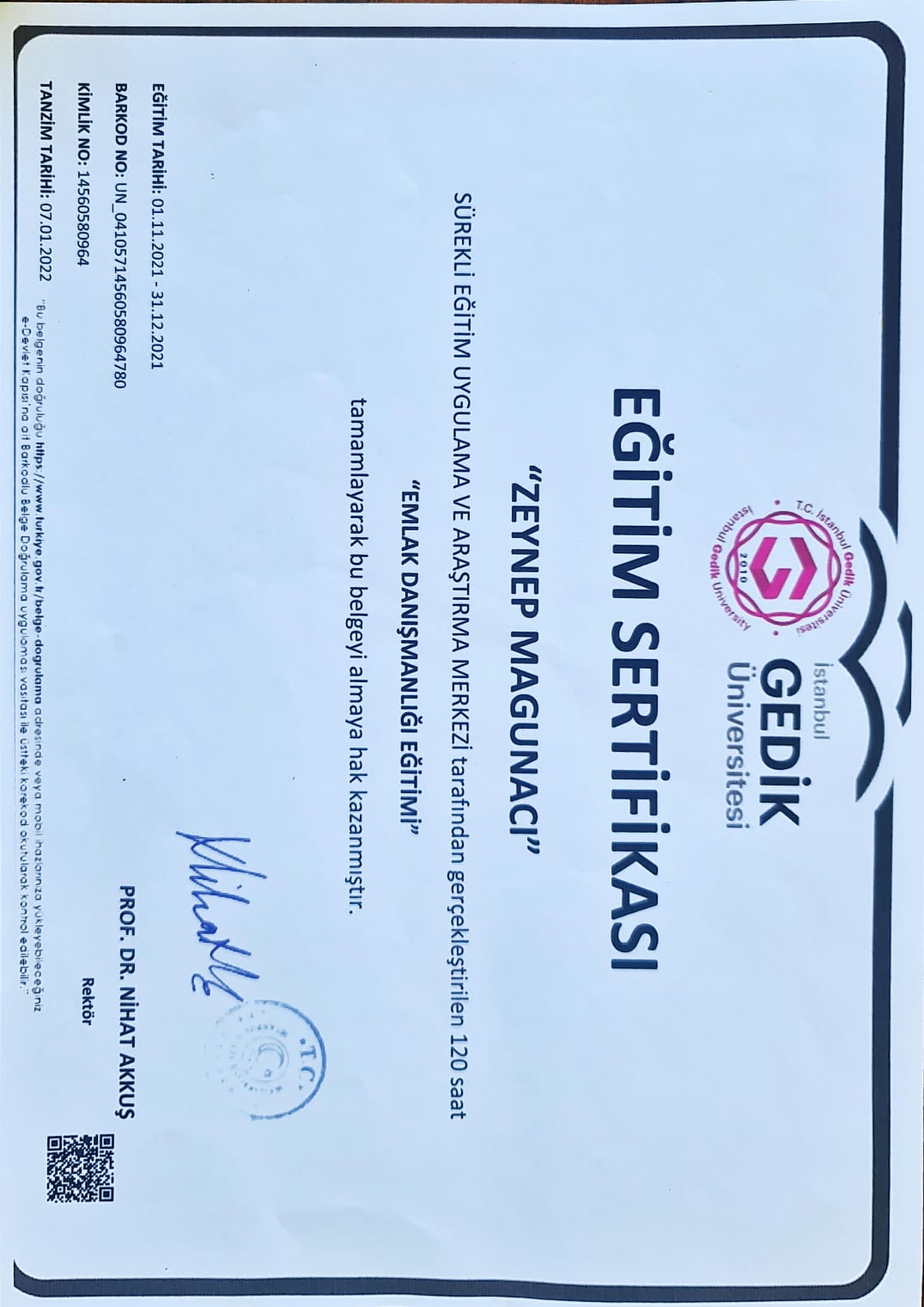 Katılınan eğitim programları ve sertifikalar